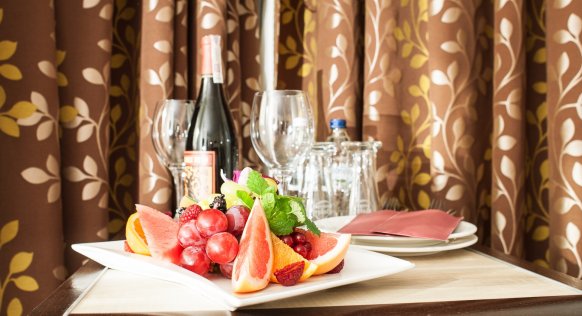 Das Hotelrestaurant, das sich auf mediterrane und französische Küche spezialisiert hat, ist die kulinarische Visitenkarte des Objekts, das Ihnen die Möglichkeit bietet, unkonventionelle Geschmacksrichtungen auszuprobieren. Im Rahmen der Halbpension werden das Frühstück als Buffet und das Abendessen ebenfalls als reichhaltiges, abwechslungsreiches Buffet oder 4-Gang-Menü angeboten.