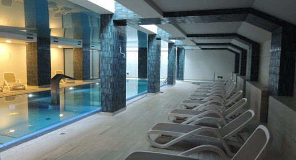 Rezeption, Aufzug, Restaurant, Café, Schwimmbad, Whirlpool, Nass- und Trockensauna, Salzgrotte, Balneoabteilung, Souvenirgeschäft, Parkplatz (gegen Gebühr).