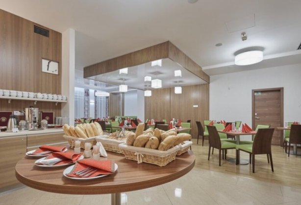 Das im Jahr 2016 komplett rekonstruierte Kurhotel befindet sich inmitten des Kurortes, nur 250 m von den nächsten Thermalquellen entfernt.