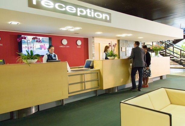 Tiefgaragen, Parkplatz (Parkgebühr: Pkw 300 CZK pro Tag), Wechselstube, Internet-Café, Friseur, Pediküre & Maniküre, Boutique, Auto-Verleih (Europcar), Casino, Café, Nachtbar, Disco.