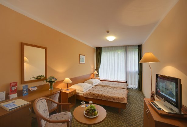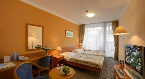 Das Kurhotel ist eines der größten Hotels in Karlovy Vary und liegt am Rande der Kurzone, nahe der heißen Mineralquellen. Hier werden sowohl moderne, als auch klassische Karlsbader Kuren angeboten wie z.B.: Trinkkur, Reflexmassagen, Elektrotherapie oder Moor- und Torfpackungen. Der Gast kann von neuen und altbewährten Anwendungen profitieren. Kuraufenthalt ab 7 Nächten bis zu 18 Anwendungen pro Woche.