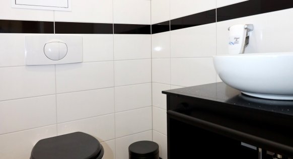 - Zweizimmerappartement: 1 Badezimmer, 1 Wohnzimmer, ausgestattet mit Polstermöbeln, einem Fernseher, 1 Badezimmer mit Badewanne und WC.