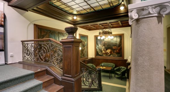 Rezeption, Garderobenraum. Alle Dienstleistungen, Verpflegung, Behandlungen und alle Anwendungen werden im Hautgebäude des Kurhotels Astoria durchgeführt.