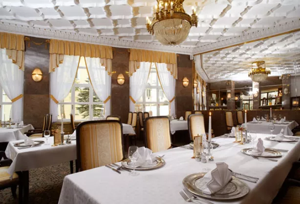 Das Hotel bietet seinen Besuchern Sitzgelegenheiten in den Hotelrestaurants und im Café im angenehmen Umfeld der im Jugendstil des 19. Jahrhunderts eingerichteten Räume. Die Gäste finden hier eine große Auswahl an Spezialitäten der böhmischen und internationalen Küche. Angenehme Momente kann man im Hotelrestaurant Palace auf einer Sommerterrasse verbringen. Restaurant Zvon und Ludvik XIV bieten eine reichhaltige Auswahl an schmackhaften Gerichten. Frühstück und Abendessen als Buffet, Mittagessen als Menü.