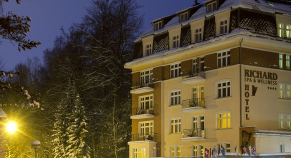 Das Hotel Richard 4*, mit direkter Aussicht auf die russisch-orthodoxe Kirche, liegt im Zentrum der Stadt Marienbad am Anfang des Waldparks und bietet Ruhe und Behaglichkeit der umliegenden Waldparks an.