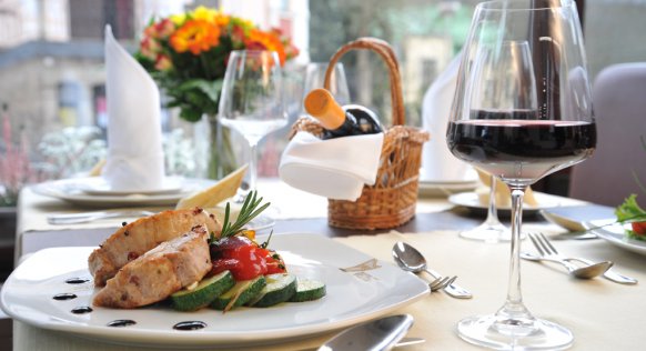 - Vollpension: Frühstücksbuffet, Mittag- und Abendessen (zum Tisch serviert)
