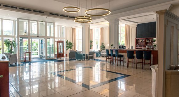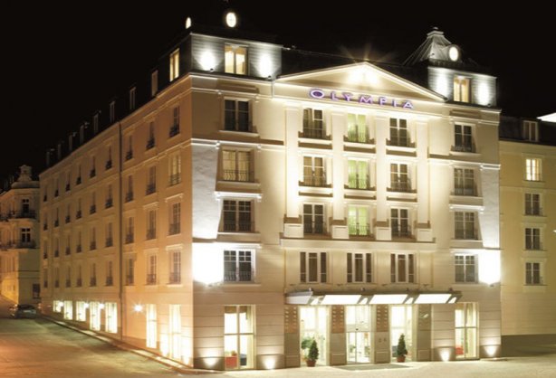 Das Hotel «Olympia» 4* liegt in einem ruhigen Stadtviertel, im oberen Bereich des Kurortes, nicht weit vom Wald und Kurpark. Das Hotel bietet seinen Gästen eine herrliche Aussicht auf den Park und die Kolonnaden mit der «Singenden Fontäne», die nicht weiter als 200 Meter vom Hotel entfernt sind.