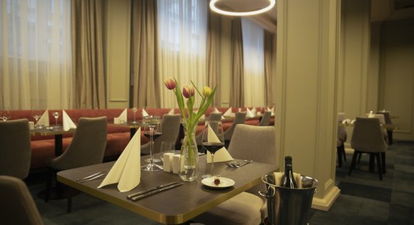 2 Restaurants: «Afina» für 60 Personen und «Sofia» für 60 Personen, Lobby-Bar, Öffnungszeiten: 8:00-23:00 Uhr. Happy Hour täglich von 15:00 bis 17:00 Uhr. Um diese Zeit bekommt man an der Lobby-Bar einen 50% Preisnachlass für jede Kaffeesorte, wenn man einen Kuchen aus der Haus eigenen Konditorei bestellt.